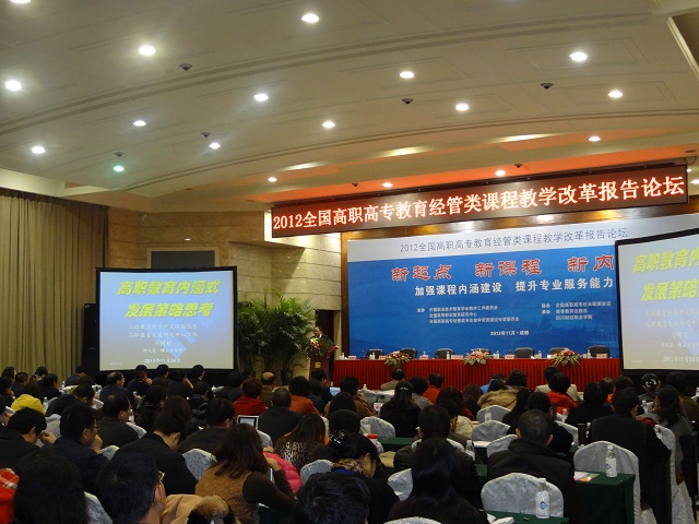 2012年11月24日,全國高職高專教育經(jīng)管類課程教學(xué)改革報告論壇在成都舉辦。本屆論壇由中國職業(yè)教育學(xué)會教學(xué)工作委員會、全國高等職業(yè)教育研究中心、全國高職高專經(jīng)管類專業(yè)教學(xué)資源建設(shè)委員會主辦,全國高職高專校長聯(lián)席會議協(xié)辦,高教出版社、四川財經(jīng)職業(yè)學(xué)院承辦。