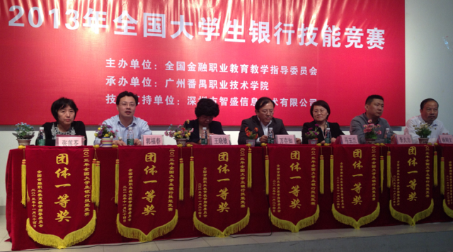2013年11月24日,由全國金融職業(yè)教育教學(xué)指導(dǎo)委員會主辦、廣州番禺職業(yè)技術(shù)學(xué)院承辦、深圳智盛信息技術(shù)股份有限公司支持的“2013年全國大學(xué)生銀行技能競賽”在廣州番禺職業(yè)技術(shù)學(xué)院舉行。中國人民銀行中國金融培訓(xùn)中心主任、全國金融行業(yè)指導(dǎo)委員會常務(wù)副主任委員萬存知,中國人民銀行中國金融培訓(xùn)中心副主任、全國金融行指委常務(wù)秘書長馬玉蘭,廣州番禺職業(yè)技術(shù)學(xué)院副校長王曉敏,智盛公司總經(jīng)理彭家源等領(lǐng)導(dǎo)蒞臨比賽現(xiàn)場。來自全國84所高職院校的252名選手和領(lǐng)隊、指導(dǎo)老師以及相關(guān)單位和觀摩單位代表共700余人參加活動。