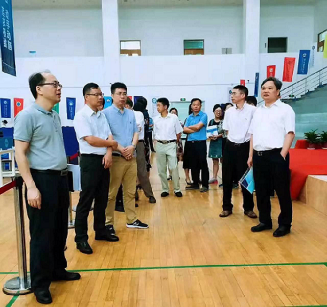 5月31日上午,大賽承辦院校——浙江金融職業(yè)學(xué)院黨委書記周建松,院長(zhǎng)鄭亞莉,副院長(zhǎng)王琦、郭福春等領(lǐng)導(dǎo)一行到比賽現(xiàn)場(chǎng)進(jìn)行賽前檢查及指導(dǎo)工作。
