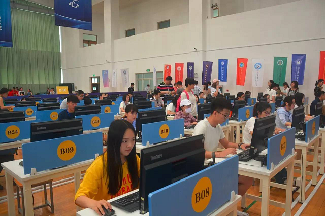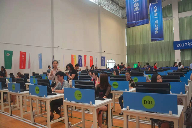 下午4點(diǎn),參賽選手來(lái)到文體中心二樓參觀賽場(chǎng)。賽場(chǎng)分為ABCD四大區(qū)域,A手工點(diǎn)鈔,B傳票算,C字符錄入,D貨幣識(shí)假。選手們根據(jù)各自的賽項(xiàng)熟悉賽場(chǎng)環(huán)境。