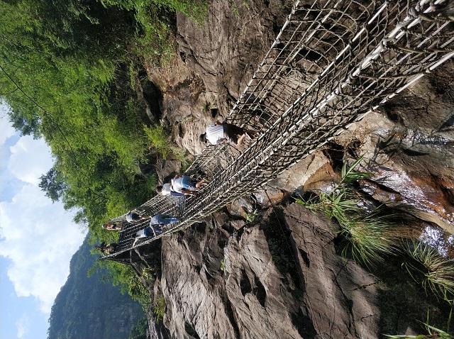 下午來(lái)到了英德——天門(mén)溝九州驛站;由驛站區(qū)和天門(mén)溝九站一廊高山森林峽谷景區(qū)兩大產(chǎn)品組成游覽。我們大隊(duì)人馬一邊爬山一邊領(lǐng)略沿途的風(fēng)景,上山路上都可見(jiàn)到沿山而下的水流,大概天門(mén)溝的名稱(chēng)由來(lái)于此。水流在石頭凹陷處形成小水潭,清澈見(jiàn)底,而且十分清涼。
