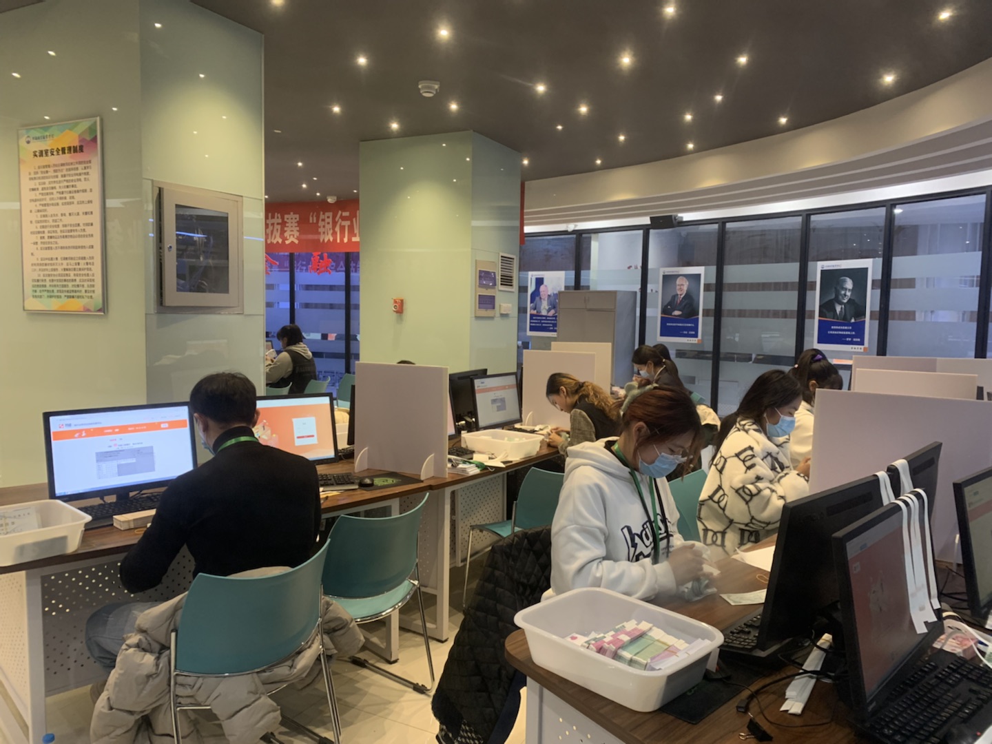 大賽過程中,選手們個個胸有成竹,凝神聚氣,點鈔、計數(shù)、扎把,有條不紊、一氣呵成,每名選手都在為自己團隊的成績努力奮戰(zhàn),展示出了扎實的業(yè)務(wù)技能?,F(xiàn)場氛圍緊張而又激烈,各參賽隊的選手們努力拼搏,你追我趕,賽出了高水平,展現(xiàn)了新風(fēng)貌。