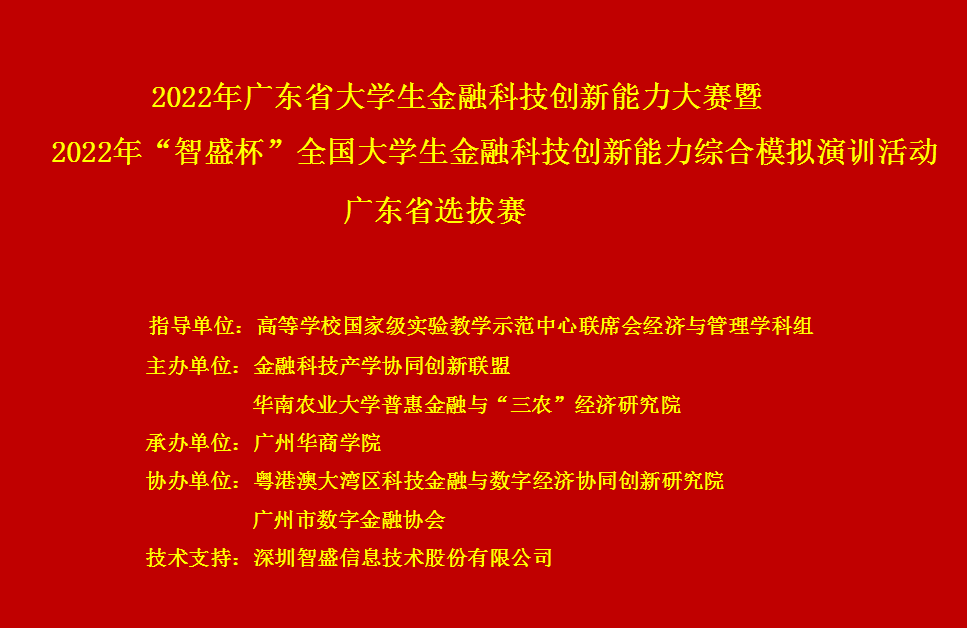2022年6月14日,2022年廣東省大學(xué)生金融科技創(chuàng)新能力大賽暨2022年“智盛杯”全國(guó)大學(xué)生金融科技創(chuàng)新能力綜合模擬演訓(xùn)活動(dòng)廣東省選拔賽成功舉辦。來(lái)自全省200多名參賽選手參加了此次云端競(jìng)賽。