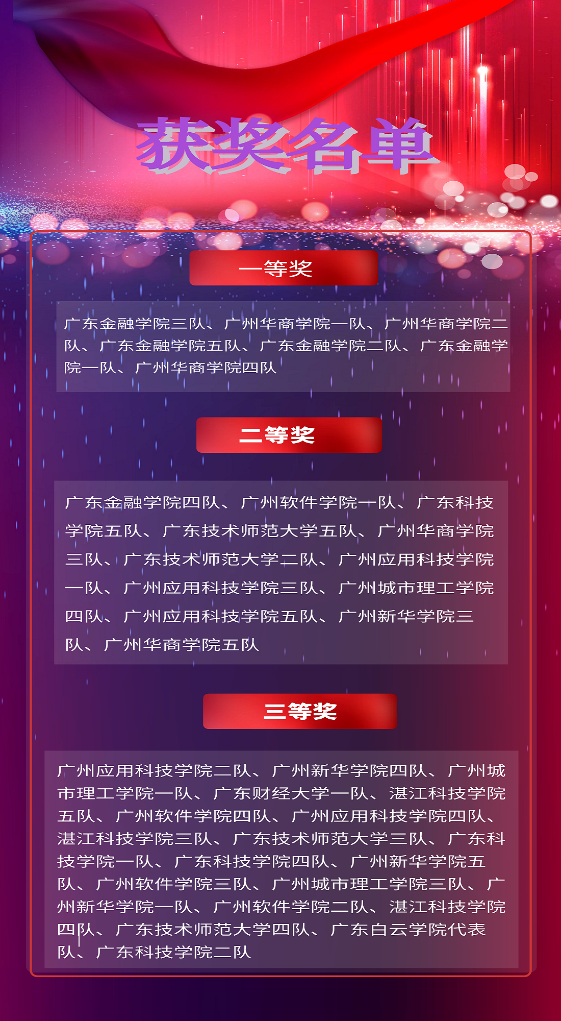 最后,讓我們以熱烈的掌聲祝賀在本次選拔賽中脫穎而出的選手們,他們將代表廣東省參加9月份的全國(guó)賽,希望他們能在接下來(lái)的比賽同樣取得優(yōu)異的成績(jī)?。ㄗⅲ好總€(gè)學(xué)校的一支隊(duì)伍排名第一的參加國(guó)賽)