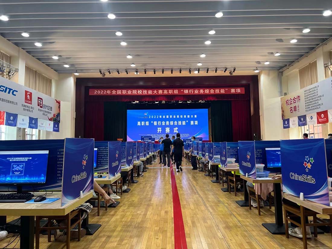 2022年8月14日至15日,由教育部、天津市人民政府、山東省人民政府、國家發(fā)改委聯(lián)合其他國家部委主辦,山東省教育廳、青島市人民政府、山東省商務(wù)廳承辦,山東外貿(mào)職業(yè)學(xué)院、深圳智盛信息技術(shù)股份有限公司協(xié)辦的2022年全國職業(yè)院校技能大賽高職組“銀行業(yè)務(wù)綜合技能”賽項(xiàng)圓滿落下帷幕!來自全國28個省、直轄市、自治區(qū)(不含港澳臺)的55個學(xué)校55支代表隊(duì)220名選手在嚴(yán)格遵守當(dāng)?shù)叵嚓P(guān)防疫要求前提下同臺競技,展示技能風(fēng)采。